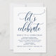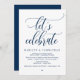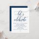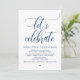 Marque el comienzo de su eternidad con elegancia usando nuestra moderna y contemporánea tarjeta de invitación a la celebración del boda con temática azul marino, "Celebremos", brunch, almuerzo, cena, fiesta y baile. Perfecto para las parejas que ofrecen su alegre ocasión, esta invitación exuda sofisticación con un toque de alegría, sentando el escenario para un evento memorable. Adornado con un tema de diseño de guiones modernos y atemporales, le da un toque de encanto refinado a sus festividades. Diseñada por TeeshaDerrick, esta invitación promete capturar maravillosamente tu historia de amor.