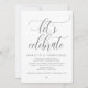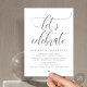 Marque el comienzo de su eternidad con elegancia usando nuestra moderna y contemporánea tarjeta de invitación a la celebración del boda con temática gris oscuro, "Celebremos", brunch, almuerzo, cena, fiesta y baile. Perfecto para las parejas que ofrecen su alegre ocasión, esta invitación exuda sofisticación con un toque de alegría, sentando el escenario para un evento memorable. Adornado con un tema de diseño de guiones modernos y atemporales, le da un toque de encanto refinado a sus festividades. Diseñada por TeeshaDerrick, esta invitación promete capturar maravillosamente tu historia de amor.