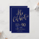 Esta fabulosa invitación a la fiesta de cumpleaños número 90 de los hombres de azul marino que dice "¡Celebremos!" con un moderno tipo de letra en oro sería perfecta para celebrar al hombre en el cumpleaños número 90 de tu vida. Esta invitación es de diseño, moderna y contemporánea. Para ver las invitaciones de sus personalizados, seleccione "Personalizar esta plantilla" y escriba su información. ¡Es muy fácil!