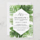 Lleve un toque de elegancia tropical a su celebración con esta invitación de "Celebremos" Palma Esmeralda. Con hojas de palma esmeralda verde exuberante contra un fondo limpio, este diseño ofrece una estética vibrante y refinada. Perfecto para eventos junto a la playa, bodas, aniversarios o cualquier ocasión especial, y totalmente personalizable para reflejar su estilo personal.