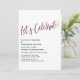 Para el encabezado de estas tarjetas en negrita, he utilizado una fuente manuscrita moderna y casual para crear una superposición de tipografía gráfica que dice "Let's Celebrate" (Celebremos). Esta imagen fue embellecida con un efecto de lámina de oro rosa metálico falso suave para una vibra de celebración. Rellene los espacios en blanco del template con sus detalles para personalizar el diseño. Todas las capas se dejaron desbloqueadas para que pueda hacer clic para personalizar aún más y reposicionar el texto o incluso cambiar tamaños o fuentes. El fondo estaba cubierto con un patrón retro repetitivo inspirado en Marruecos que ha sido embellecido con el mismo efecto de oro rosa. Por favor, no dude en hacérnoslo saber para obtener ayuda con la personalización.