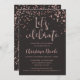 Esta invitación de fiesta de cumpleaños con confeti de Rosa Dorado falso sobre fondo Gris Oscuro “Celebremos” es perfecta para una celebración moderna y elegante. Esta invitación también funciona bien para una celebración de jubilación, aniversario de bodas, fiesta de compromiso, despedida de soltera, cena de despedida o cualquier otro evento.