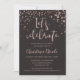 Esta invitación de fiesta de cumpleaños con confeti de Rosa Dorado falso sobre Gris Oscuro “Celebremos” es perfecta para una celebración moderna y elegante. Esta invitación también funciona bien para una celebración de jubilación, aniversario de bodas, fiesta de compromiso, despedida de soltera, cena de despedida o cualquier otro evento.