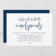 Tarjeta de invitación de elopamiento de boda con tema de escritura azul marino clásico moderno (Celebren con los recién casados). Es perfecta para su recepción de elopamiento de boda / fiesta de celebración después de la boda. Agregue sus detalles en fuente / letra negra coincidente.
