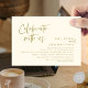 Anuncie elegantemente su felicidad eterna con nuestra tarjeta de invitación de boda con tema de oro amarillo moderno, celebración de elopement, barra de efectivo y adultos solamente, "Celebre con nosotros". Diseñada para parejas que continúan su historia de amor, esta invitación logra un equilibrio perfecto de sofisticación y encanto, preparando el escenario para un evento inolvidable. Con un diseño de letra contemporáneo moderno, añade un toque de gracia atemporal a su día especial. Diseñada por la talentosa TeeshaDerrick, esta invitación es una expresión elegante de su amor duradero.