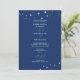 Invite your guests to a night of romance and starlight with this Celestial Elegant Wedding Blue Rehearsal Dinner Invitation from the Celestial Elegant Wedding Collection. Featuring a deep navy blue background adorned with twinkling stars and refined typography, this modern celestial design is perfect for couples who love a minimalist yet luxurious aesthetic. Easily personalize with your names, wedding date, and venue details for a fully customized touch. Ideal for celestial weddings, winter celebrations, or elegant evening receptions. Pair it with matching RSVP cards, programs, menus, and signage for a cohesive wedding suite.