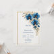 Welcome your guests to a celebration of opulent beauty with this striking botanical masterpiece. The design features a sophisticated cluster of deep indigo blue orchids cascading from the upper right corner, their petals rendered with fine detail and highlighted by shimmering gold-tipped centers. Delicate sprigs of small white blossoms and gilded nature stems weave through the primary flora, while a whimsical dusting of gold stardust specks adds a touch of high-end magic. A thin, double gold line border frames the composition against a clean, textured ivory backdrop, creating a high-contrast aesthetic that is both modern and timeless. This wedding invitation is a premier choice for a formal black-tie gala, a sophisticated nautical-themed beachfront ceremony, or a luxe winter ballroom wedding. It is perfectly suited for couples utilizing a regal color palette of navy blue, gold, and ivory. The high-contrast, artistic orchids set a tone of opulent romance, making it an ideal match for prestigious venues such as an upscale city hotel, a historic manor house, or an elegant private estate reception.
