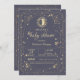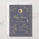 Celestial gold sun and moon, and stars on a watercolor purple background. These baby shower invitations are easily customized for your event by simply adding your details.