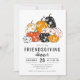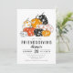 Este diseño vacacional incluye calabazas florales modernas en naranja, negro y blanco con su información personalizada Friendscome Dinner Invitation más abajo. Gracias por la invitación. Invitamos a calabazas. naranja.