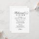 El diseño formal de la invitación a cenar en blanco y negro presenta una tipografía hermosa que combina un guión de caligrafía floreciente tradicional con letras en bloques clásicas y un acento de diseño de desplazamiento. El texto personalizado puede ser totalmente personalizado para la ocasión especial. Por favor, compre nuestra Colección de Bodas Clásicos Elegantes en Blanco y Negro para coordinar diseños.
