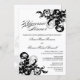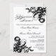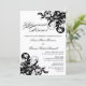 © 2013 Socialite Designs. Nuestro hermoso texto de caligrafía "Cena ensayada", con texto negro sobre fondo blanco, y elegantes florecientes negro y plateado, añaden un toque de elegancia a esta invitación a la cena. Reemplace fácilmente nuestro texto de plantilla para su evento de cena. Todos los elementos de diseño se pueden cambiar de tamaño, mover o eliminar.