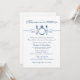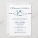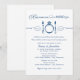 El diseño temático de azul marino y blanco "come, bebe y te cases" invita a los huéspedes a los ensayos y a la cena.