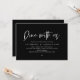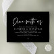 Anuncie su gusto después con estilo con nuestro moderno diseño temático (Dine con nosotros) boda de la carta de invitación a la celebración de ensayo. Es ideal para las parejas que han decidido celebrar la noche anterior a su gran día. Con un diseño sofisticado pero lúdico, esta invitación seguramente marcará el tono para un evento inolvidable. La tarjeta de invitación presenta un diseño negro elegante, añadiendo un toque de elegancia eterna a tu celebración. Diseñado por TeeshaDerrick