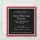 Un diseño moderno y profesional en negro, rojo y blanco con tipografía blanca crujiente hace que esta sea una elegante invitación para su cena y función de negocios. Perfecto para eventos corporativos, empresariales, artísticos, culturales y sin fines de lucro. La llamativa invitación en negro y blanco tiene un borde blanco que está bordeado por un borde rojo vibrante más grueso. El reverso de la tarjeta es un rojo sólido con un mensaje de agradecimiento. Todo el texto se puede personalizar para su evento.