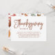 Invite a sus amigos y familiares a la cena de Acción de Gracias con estas elegantes invitaciones. Un fondo blanco presenta una rica tipografía de escritura moderna marrón. El reverso de la invitación de Acción de Gracias presenta un hermoso patrón de hojas de otoño.