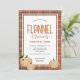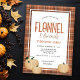 Esta invitación a la cena de Acción de Gracias con amigos y franela presenta un borde de patrón de franela de colores otoñales acogedor acentuado con calabazas de otoño. Esta invitación es perfecta para la reunión de Acción de Gracias con tus amigos.