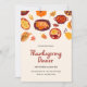 Reúne a sus seres queridos para una cálida cena de Acción de Gracias con esta encantadora invitación ilustrada. El diseño presenta una deliciosa variedad de alimentos de Acción de Gracias y elementos de otoño en tonos vivos de naranja, amarillo y rojo, todo ello con un suave fondo beige. El estilo de ilustracion, alegre y elegante, captura perfectamente el espíritu festivo de la fiesta, haciendo de esta invitación una elección encantadora para su reunión de Acción de Gracias. Seguramente marcará el tono para una memorable tarde de gratitud y buena compañía.