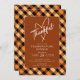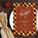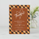 Esta moderna invitación de Acción de Gracias presenta un fondo de búfalo de color otoñal y el dicho "Agradecimiento" en un corazón elegante. Es la manera perfecta de invitar a tu familia y amigos a celebrar la fiesta con ustedes.