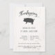 Esta invitación elegante y sencilla para una gran cena de Acción de Gracias presenta un fondo con aspecto de madera blanca desgastada, una silueta de cerdo de estilo granja y una escritura rústica de moda. La parte trasera de la invitación tiene un aspecto de pizarra negra.