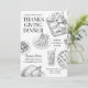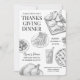 Establece el tono para una reunión festiva acogedora con esta invitación rústica a mano para la cena de Acción de Gracias. Con detalladas ilustraciones de comida en blanco y negro —incluyendo pavo, pastel, bebidas y platos de la cosecha de otoño—, este diseño aporta un toque atemporal y artesanal a tu celebración. Perfecto tanto para cenas formales de Acción de Gracias como para fiestas informales de Friendsgiving.