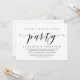 Tarjeta de invitación de boda a escondidas con tema de letra moderna (Fiesta de Feliz para Siempre). Es perfecta para su celebración de boda a escondidas relajada junto al lago.