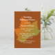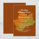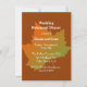 Invitación a la cena con temática boda de otoño, con gráficos de una colorida hoja de arce de otoño, en el medio, contra un fondo de color de calabaza. Personalice el texto en blanco para que se ajuste a sus necesidades de eventos. La invitación se muestra en el material básico de tarjetas de estilo normal, elige la forma y el material de la tarjeta que prefieres.