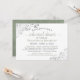 Esta hermosa cena de ensayo es a la vez sencilla y elegante. Presenta un texto verde sabio y gris sobre un fondo blanco con Relieves metalizados falsos de plata lacada o juguete en las esquinas. Dispone de información tanto sobre el ensayo boda como sobre la cena de celebración que sigue. Perfecto para mantener la fiesta nupcial informada sobre todas las festividades pre-bodas.
