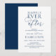 Hermosa Tarjeta de Invitación de cena y fiesta post boda moderna y romántica con guión en azul marino (Fiesta Felices para Siempre). Esto es perfecto para su celebración de boda post elopement. Agregue sus detalles en color coincidente, fuente / letra.