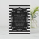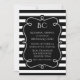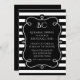 Elegante y moderno ensayo boda de la invitación a cenar en un marco de rayas horizontales blancas y negras. Un área de texto decorativo negro tiene un monograma personalizado y campos de texto listos para personalizar. La encantadora invitación que la pareja apreciará con todos sus recuerdos bodas. Elige tu carta favorita y forma de invitación.