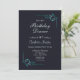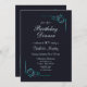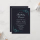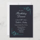 Una elegante invitación para una cena de cumpleaños número 50 en azul medianoche profundo con esquinas adornadas con flores ornamentales turquesas para enmarcar los detalles de la invitación.