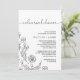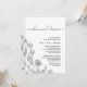 Esta elegante y delicada tarjeta de invitación a la cena es perfecta para un minimalista ensayo boda. El diseño floral presenta un diseño sencillo y elegante de delicadas flores silvestres blancas y negras, emparejadas con una fuente caligráfica romántica.
