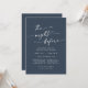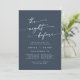 Esta moda de boho de color azul marino oscuro es ideal para una cena minimalista antes del ensayo boda. El diseño bohemio moderno azul oscuro, suave y monótono, presenta una caligrafía rústica sencilla con un estilo único y clásico.