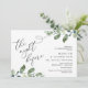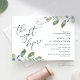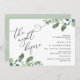 Hermoso diseño romántico moderno, en eucalipto deja color de agua verde temática, Boda de la cena y tarjeta de invitación a bailar (La noche anterior). Esto es perfecto para su fiesta de celebración de la cena de ensayo boda. Añadir los detalles de la celebración. Teesha Derrick
