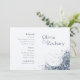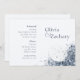 Estas invitaciones a la cena boda de 7" x 5", presentan un diseño de agua salpicada y color azul polvoriento con un dólar de arena escondido en la arena. Marcadores de posición para nombres de novias, ensayos y detalles de la cena.