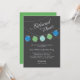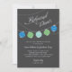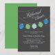 Esta fresca y festiva invitación para la cena de ensayo de boda cuenta con una encantadora cadena de linternas de papel azules, verdes y aqua sobre un fondo gris carbón rico con delicadas luces de cuerda. La tipografía de escritura plateada añade un elegante toque final a la fría paleta de colores costeros. Todos los nombres, fechas y detalles del evento son totalmente editables. Una opción perfecta para una cena de ensayo de boda costera, náutica o de jardín.