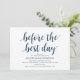 ¿Planeando una celebración de la cena de ensayo boda con la futura novia y el futuro novio, antes de su GRAN día? Invite a los invitados con esta tarjeta de invitación para el ensayo de Boda rústico. Añade tus detalles de la cena de ensayo en letras y letras negras.