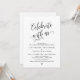 Esta es la moderna invitación de cena de ensayo de boda con Caligrafía Simple Elegante Negra (celebra con nosotros). Una tarjeta perfecta para invitar a su amada familia y a sus invitados a la celebración de la cena de ensayo de boda. Agregue los detalles de su celebración en la fuente / letra coincidente.