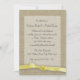Invite a cenar a la fiesta de bodas después del ensayo con este diseño de arpillera de bonito y lazo. Perfecto para los bodas rústicos de la temática rural, esta invitación le da un aspecto de rústica burlap y un toque de romanticismo a la antigua. Texto personalizar en esta invitación para cualquier ocasión o contacto conmigo y lo crearé para adaptarlo a sus necesidades.