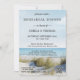 Invitación a la cena con un ensayo moderno con una imagen de dunas que dan a una playa. Se agrega una plantilla de código QR fácil de personalizar. (Puede borrar fácilmente los textos y el código si no lo necesita). Esta invitación es encantadora para una pareja que planea una boda de playa, crucero o destino.