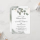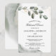 Celebre la noche antes de su gran día con estilo con esta elegante invitación de cena de ensayo de verde acuarela. Con hojas de eucalipto pintadas a mano y detalles de polvo de oro suave, es el diseño perfecto para una boda rústica, de jardín o minimalista.