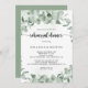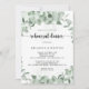 Esta clásica invitación al eucalipto verde para la cena es perfecta para un evento rústico. El diseño presenta hermosas hojas de eucalipto de color verde acuático.