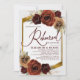 La invitación a la cena, de carácter boda, incluye flores de otoño de color burdeos pintadas con aceite rústico sobre la vegetación y la pampa con un elegante marco follaje de oro y fondo.