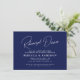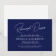 Esta sencilla invitación a la cena de boda de ensayo cuenta con un texto de guión elegante sobre un fondo azul oscuro.