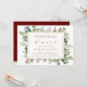 Esta invitación para la cena de ensayo presenta eucalipto pintado a la acuarela, hojas verdes, bayas rojas, ramas de pino y un marco rectangular de falso oro con caligrafía elegante. Para una personalización más avanzada de este diseño, haga clic en el enlace "Personalizar más". También están disponibles artículos que coinciden.