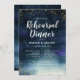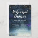 Elegante ensayo de bodas invitación a cenar con purpurinas de oro y color azul marino sombrío. Esta plantilla ya tiene textos que tienen toda la información que necesita para su evento. Los textos son fácilmente personalizables en línea.