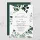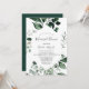 Esta invitación a una cena de esmeralda es perfecta para un ensayo de boda boho. El diseño es elegante y rústico, con unas hojas de acuarela verde oscuro y un eucalipto con un toque bohemio moderno.