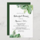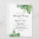 Esta invitación a un ensayo de vegetación tropical es perfecta para un simple ensayo boda. El diseño se compone de palmeras verdes de color agua pintadas a mano y hojas de plátano cuidadosamente dispuestas en bonitos ramos.