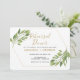 Cena de ensayo elegante invitación de vegetación y oro. Personalizada con las iniciales de la novia y el novio en la parte posterior. Encuentre productos coincidentes en nuestra tienda o contáctenos.