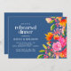 Invitación a la cena de ensayo floral acuarela moderna rosa y naranja sobre fondo azul