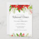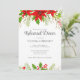 Este clásico ensayo de Navidades rojos y verdes para la cena ofrece flores de timbre brillantes en la parte inferior derecha de la invitación y bayas y vegetación en la parte superior izquierda. Una invitación festiva y brillante para un boda de vacaciones con escritura roja.